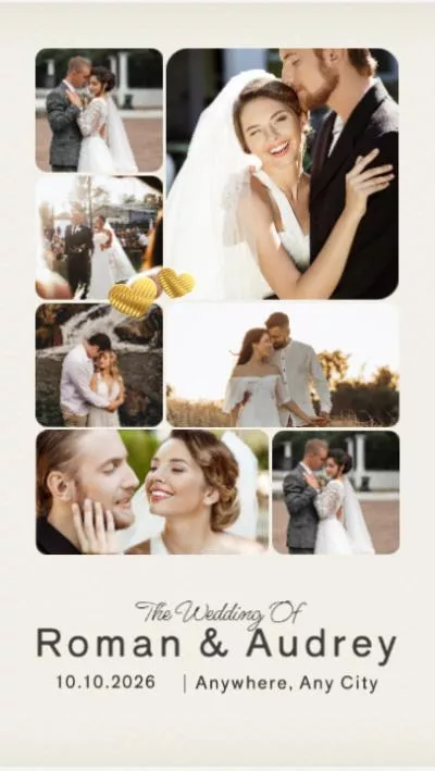 Want to make a wedding collage like this one? Simply tap on Customize icon and replace the presets with your pictures, then it's time for sharing. No editing experience is needed.