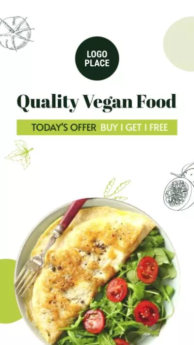 Get inspired by the ready-made vegan restaurant ad and create your unique one now. No editing experience is required. It is easy and free!