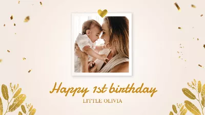 Gold Elegant Luxury Baby 1st Birthday Greeting Photo Collage Slideshow